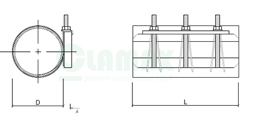 CLAMAX-RC-1 это одночастевой ремонтный хомут предназначен для ремонта газопроводов, водопроводов, канализационных труб, а так же труб из различных материалов жестких и мягких (ПЭ). Ремонт повреждений до 500 мм и более.